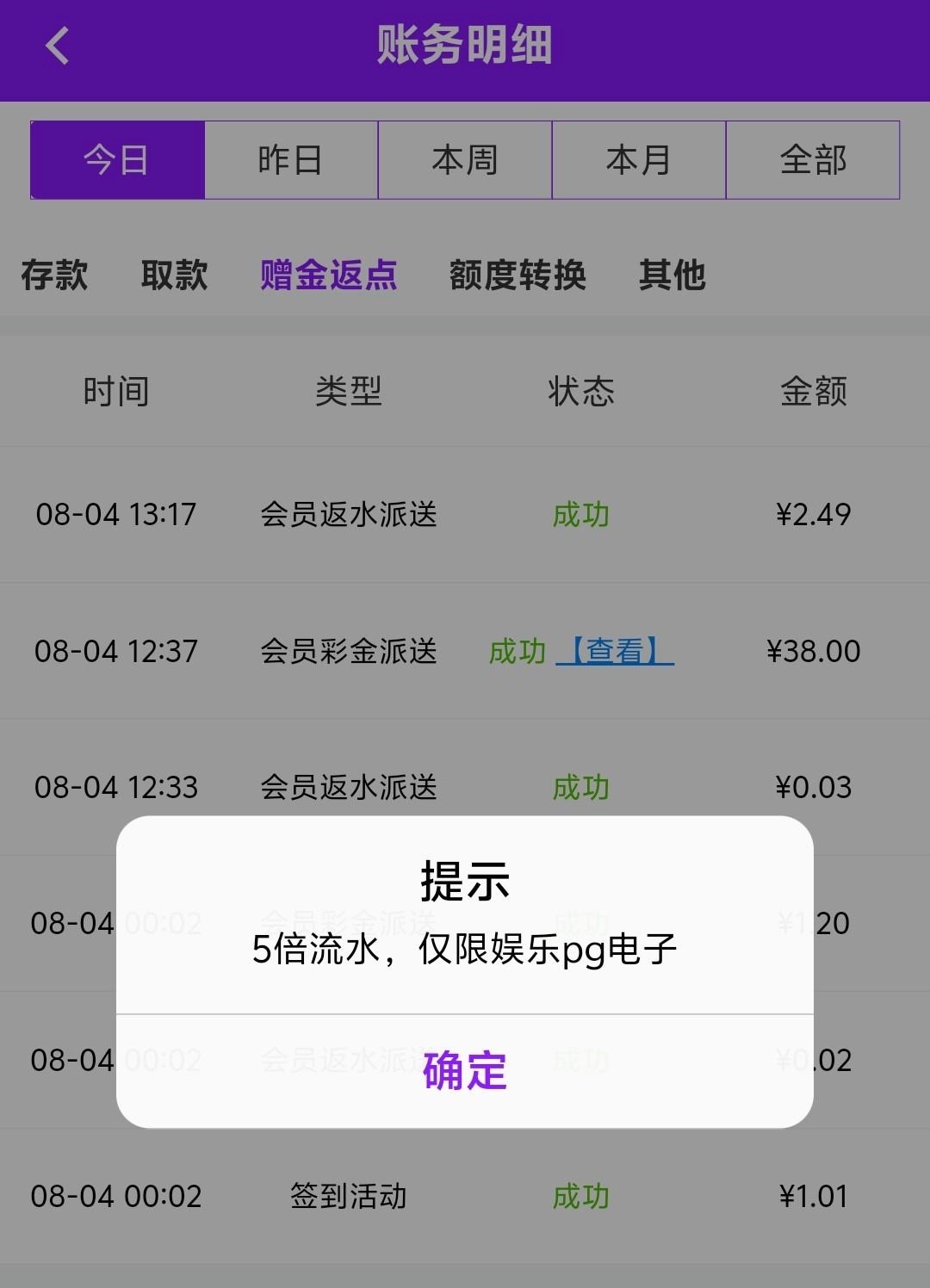有号的兄弟登入上去看看自己在不在回访名单,在名单里面登入上去有弹窗的,彩金5倍流水,仅限PG电子