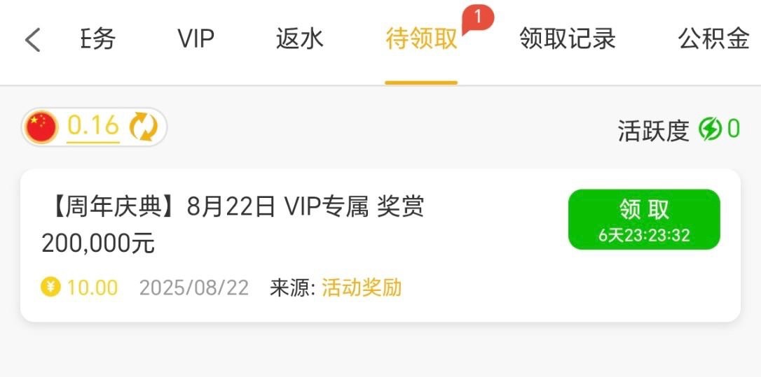 有VIP等级的兄弟可以登入上去看看优惠有没有给你送,彩金根据VIP等级送的