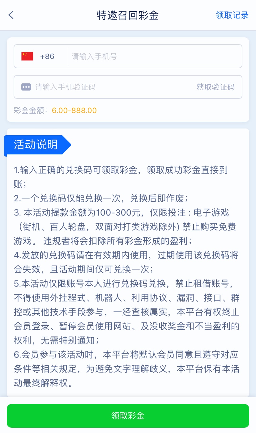 注册有号的兄弟可以登入上在优惠里自助领取彩金只能提100-300不能购买免费游戏,仅限电子游戏